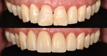 Estetická rekonstrukce horních předních zubů pomocí keramických korunek